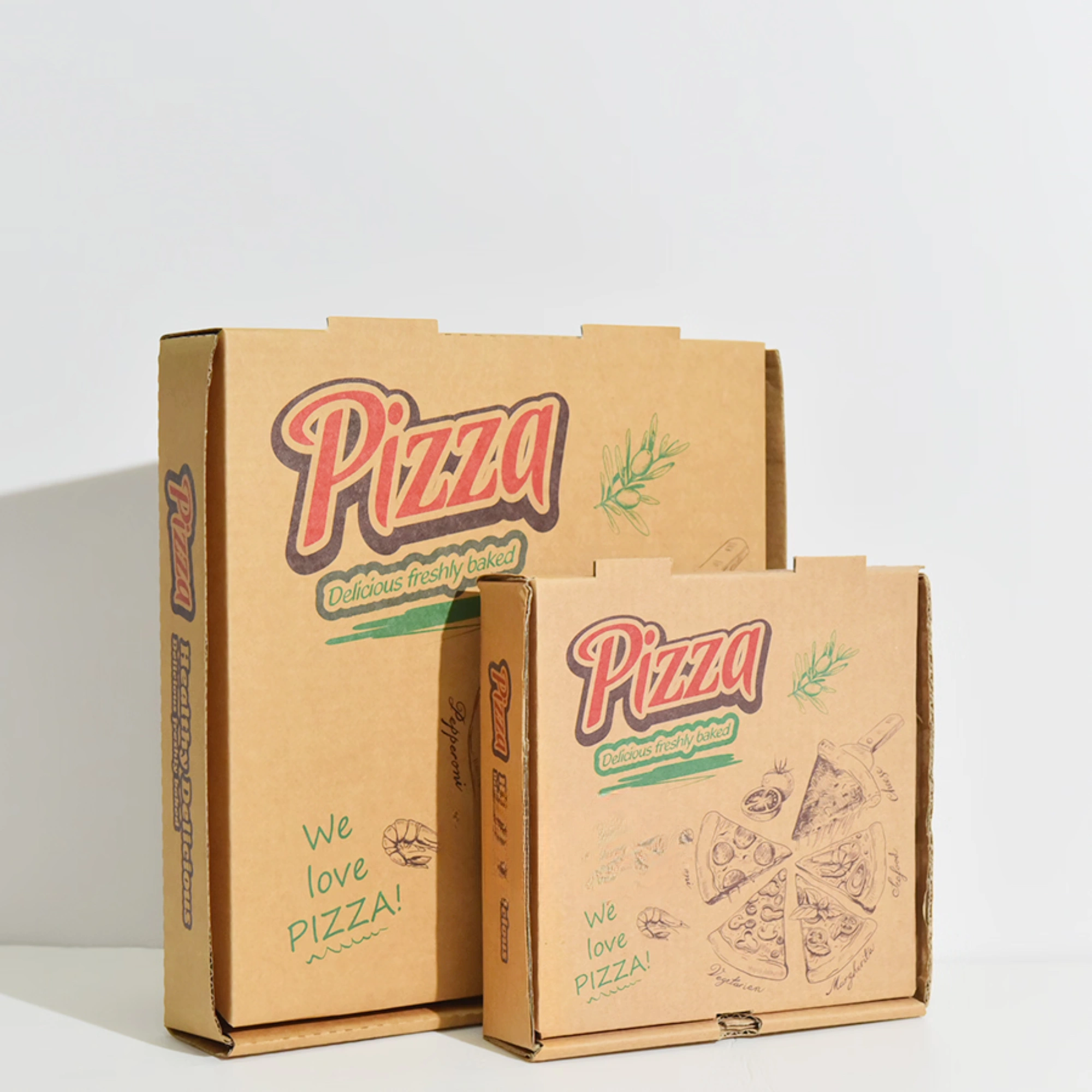 Corrugated pizza boxes can be customized to meet specific needs. You can add your logo, graphics, or images to create a unique and personalized design.