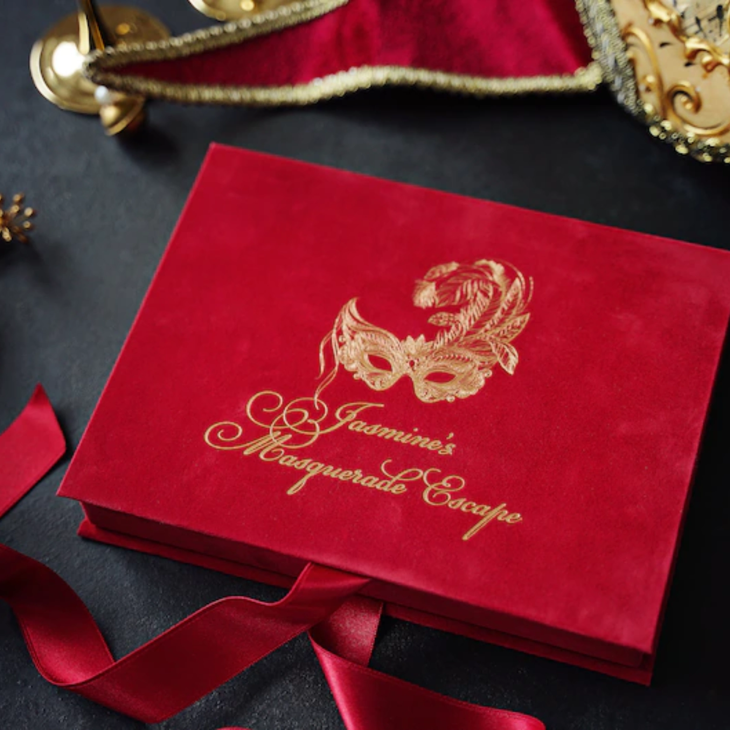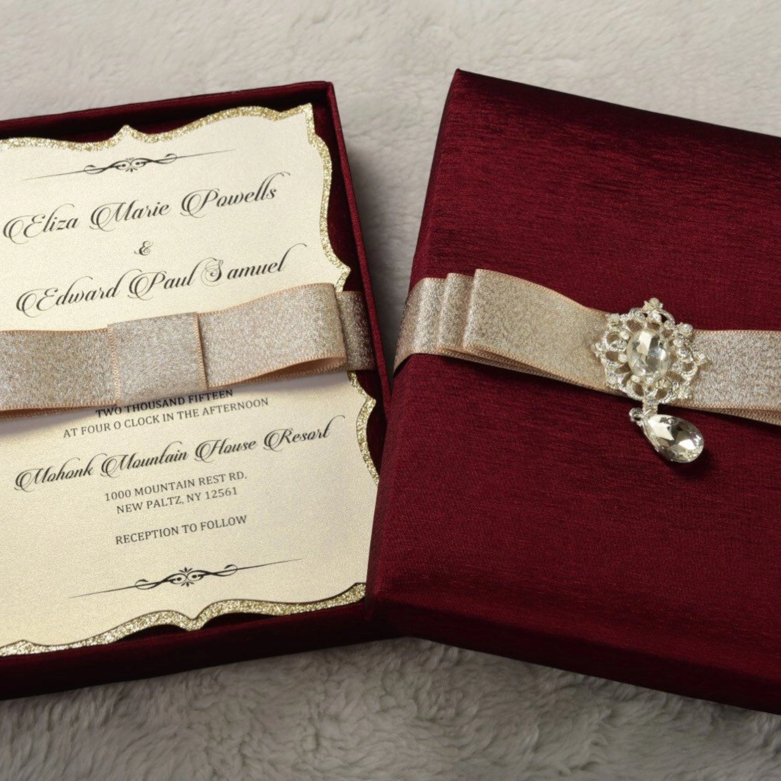 - Luxury: A high-end velvet invitation box with advanced features such as foil stamping and embossing.