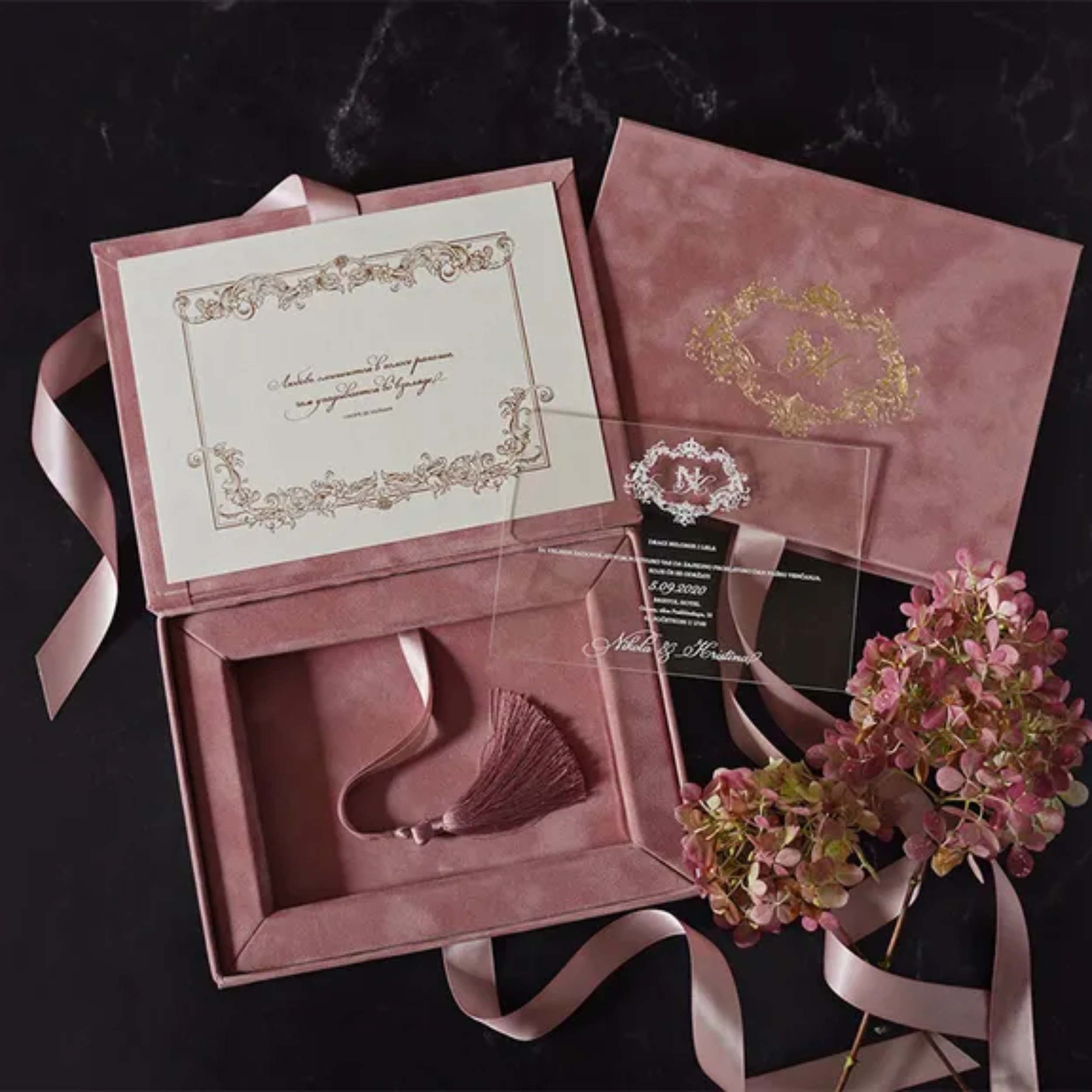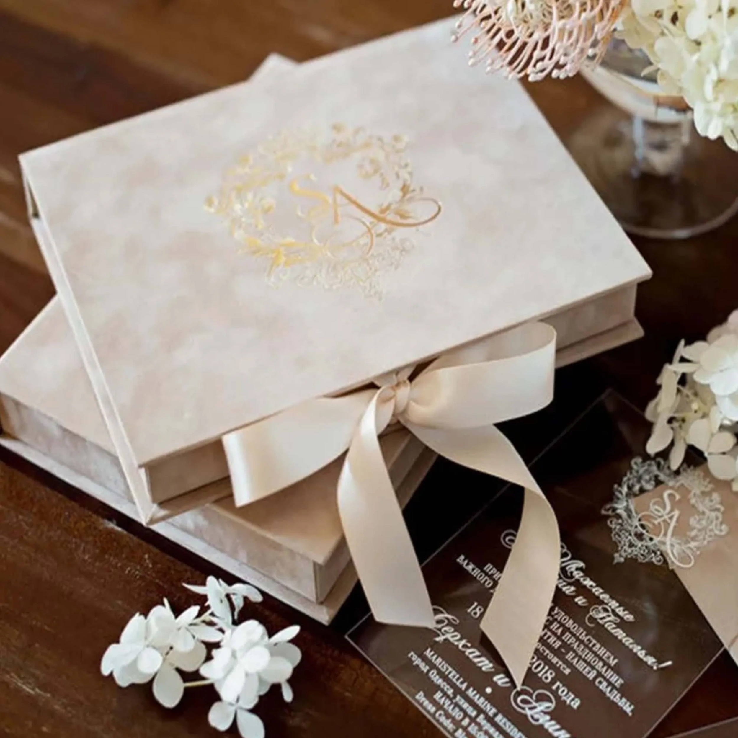 - Custom: A bespoke velvet invitation box designed to meet your specific needs and requirements.